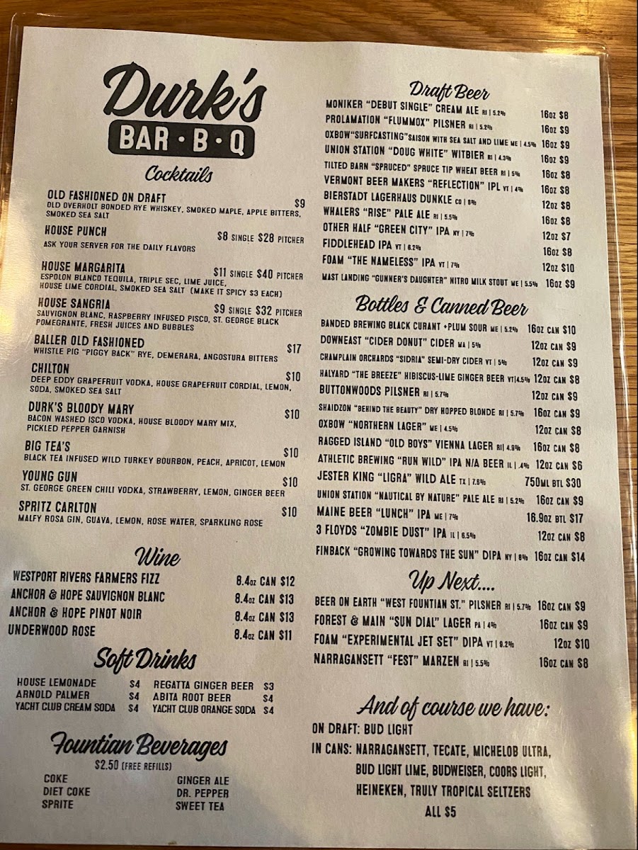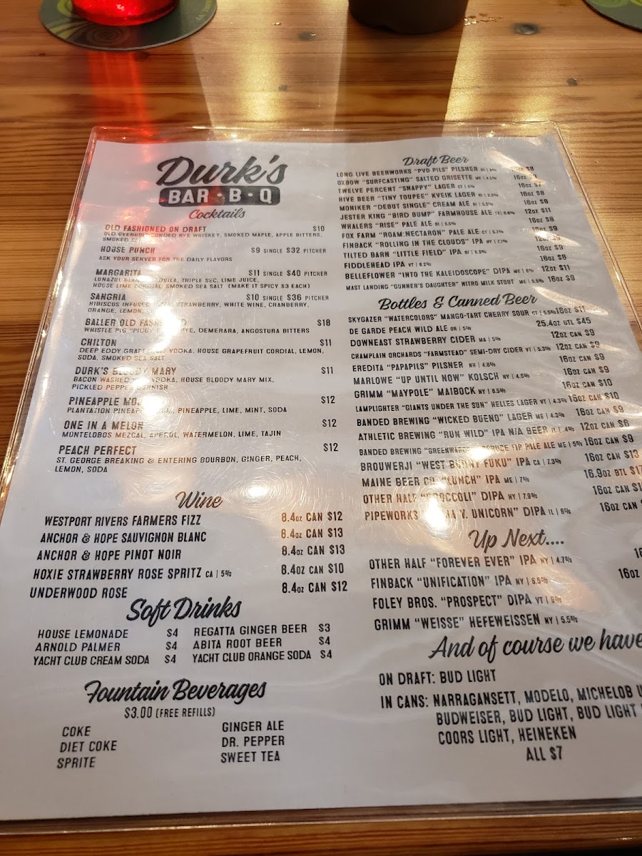 Welcome to Durk's Bar•B•Q, a true gem nestled in Providence, RI, known for its mouthwatering commitment to BBQ excellence. The menu is a barbecue lover's dream, featuring delectable starters like the Chopped Salad and irresistibly savory Smoked Tomato Sliders at just $6. For the main event, indulge in tender Brisket, fall-off-the-bone Ribs, and flavorful Pulled Pork. Each dish is crafted with care, showcasing unique twists like the White BBQ Sauce that elevates the iconic wings. Don’t miss the unexpected delight of their house-made Pierogis, topped with pastrami bits!